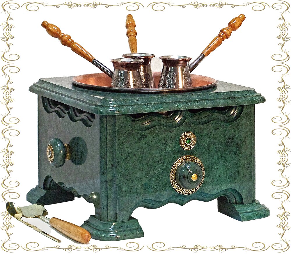 Мы используем только высококачественные материалы: натуральный природный мрамор, бронзу, медь, массив бука и ели. Выбираем самый красивый мрамор со всего мира - Италии, Испании, Греции, Турция, Гватемалы, Филиппин. Автоматика поддерживает нужную температуру для получения кофе наивысшего качества и исключает перегрев.